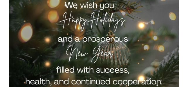 Αγαπητοί συνεργάτες, Θα θέλαμε να σας ευχαριστήσουμε θερμά για την εμπιστοσύνη και τη συνεργασία σας, που αποτελούν αναπόσπαστο μέρος της πορείας και της εξέλιξής μας. Ευχόμαστε το πνεύμα των Χριστουγέννων να γεμίσει τις καρδιές σας με χαρά, αγάπη και αισιοδοξία.